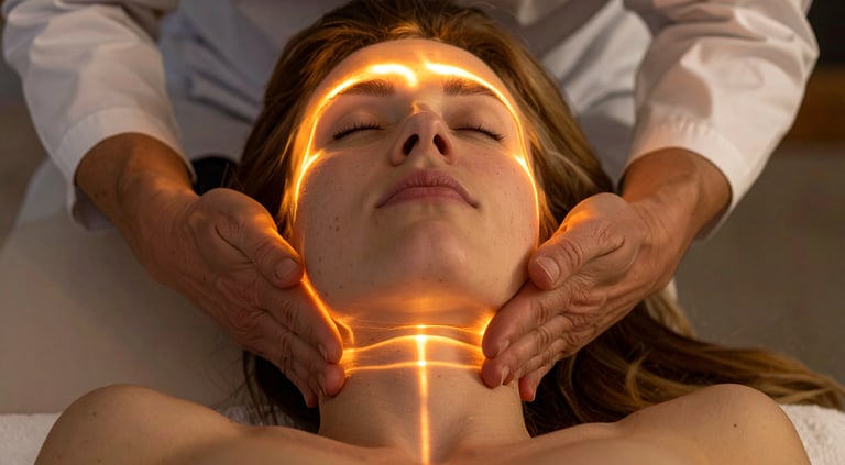 Bei dieser sanften Massage von Gesicht, Hals und Dekolleté werden gezielt Energiepunkte aktiviert, um Blockaden zu lösen und den natürlichen Energiefluss im Körper zu harmonisieren. Gleichzeitig wird der Lymphfluss angeregt, was die Entgiftung unterstützt und Schwellungen mindert. Die Massage fördert die Durchblutung, stärkt die Spannkraft der Haut und löst Verspannungen. Sie sorgt nicht nur für eine sichtbar strahlende Ausstrahlung, sondern auch für tiefe Entspannung, Wohlbefinden und innere Vitalität.